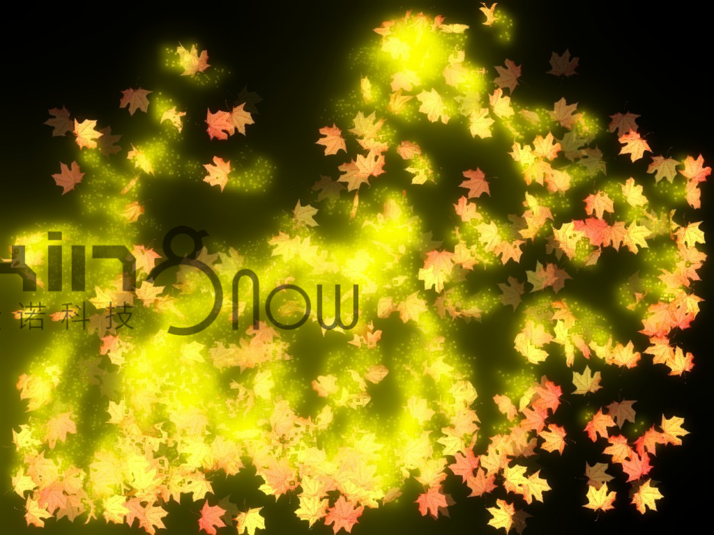 投影畫面為秋天的林間小道,小道的地面上布滿散落的楓葉,整體的場景營造出秋色的魅力,當觀眾進入投影區(qū)域,觀眾走過的路徑會使得地面上的楓葉隨風(fēng)而起,為觀眾推開一條道路。該系統(tǒng)結(jié)合天氣因素,可設(shè)置雨滴效果,用以在陰雨天氣進行展示。