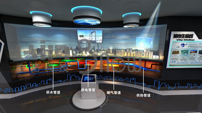 產(chǎn)品功能:觀眾通過控制電機觸摸屏上按鈕,選擇 “橋梁安全檢測系統(tǒng)”、“電梯安全監(jiān)管系統(tǒng)”、“地下管網(wǎng)安監(jiān)系統(tǒng)”或“綜合管廊安監(jiān)系統(tǒng)”,進入相應(yīng)的界面,參觀并瀏覽城市生命安全相關(guān)的模擬內(nèi)容,并掌握相應(yīng)的知識技能。