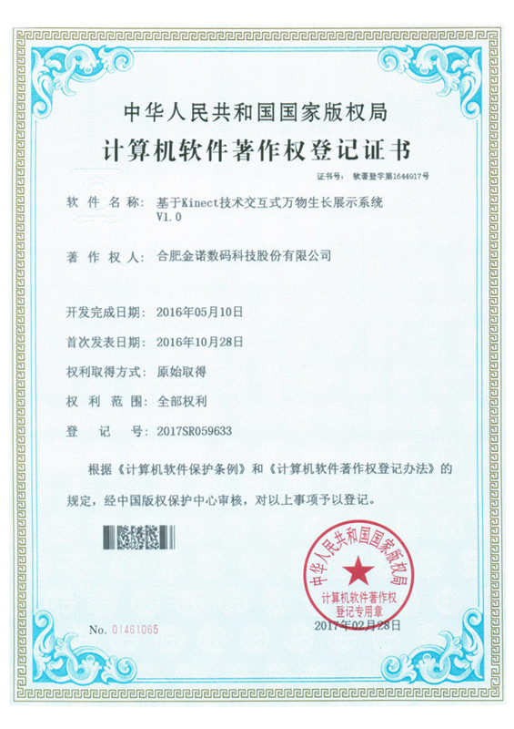 作為數(shù)字媒體技術(shù)領(lǐng)軍企業(yè)代表,金諾科技自創(chuàng)業(yè)之初一直致力于具有自主知識(shí)產(chǎn)權(quán)的數(shù)字媒體技術(shù)研發(fā),并十分重視知識(shí)產(chǎn)權(quán)的保護(hù)。每年都申請(qǐng)并順利獲批多項(xiàng)實(shí)用新型專利及軟件著作權(quán)。近日,再次傳來(lái)捷報(bào),金諾科技13項(xiàng)具有自主知識(shí)產(chǎn)權(quán)的軟件產(chǎn)品榮獲國(guó)家版權(quán)局頒發(fā)的軟件著作權(quán)登記證書(shū)。