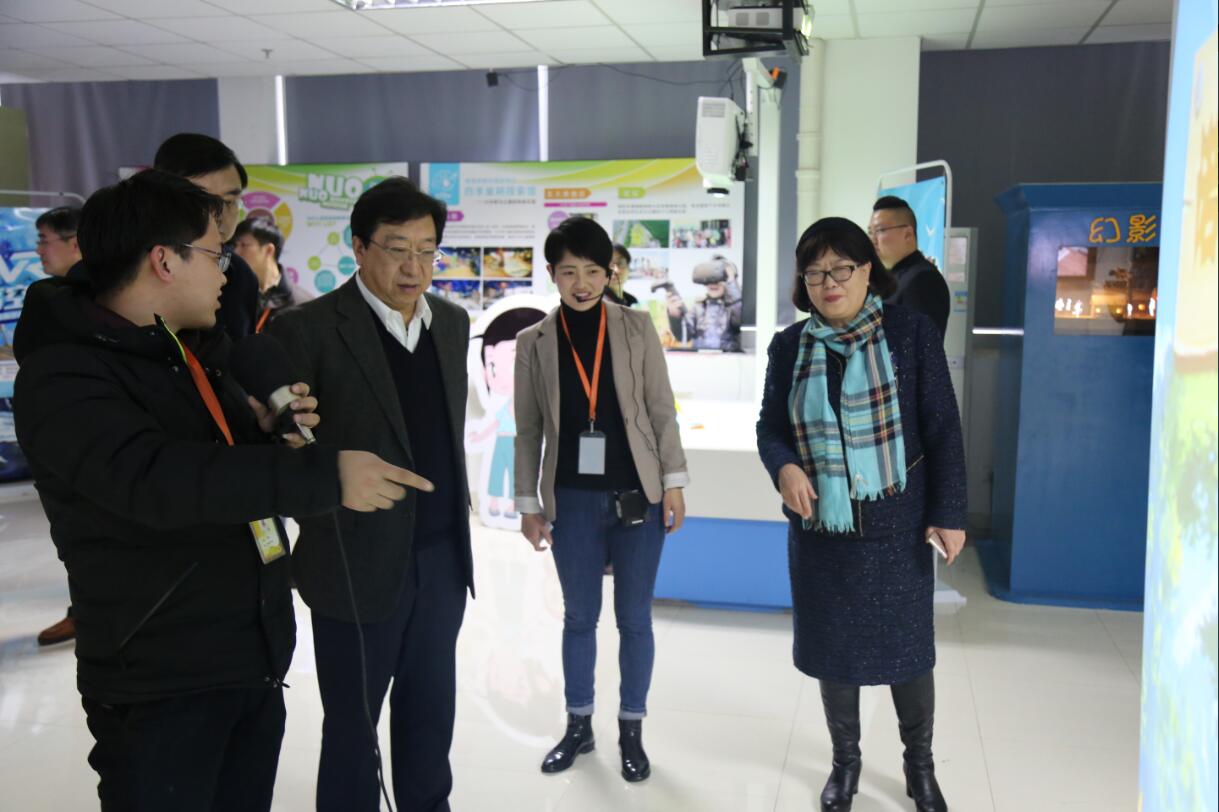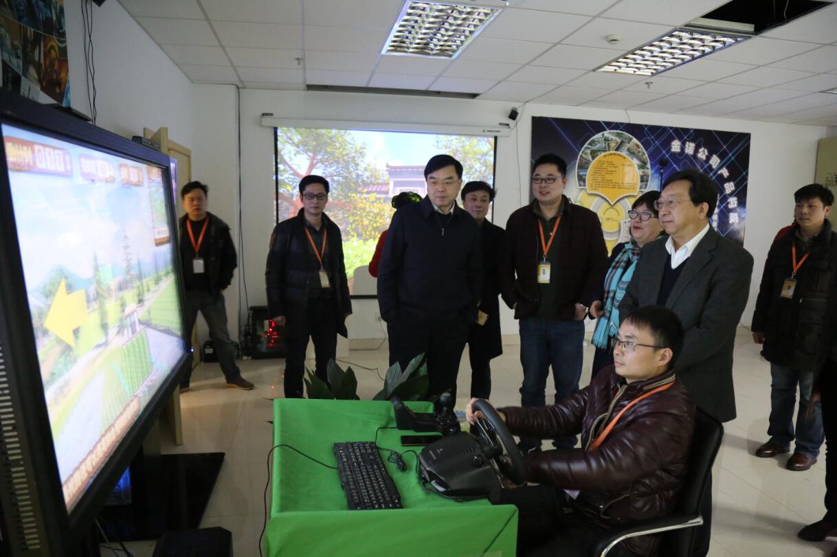 徐延豪書記一行首先參觀了公司展廳,對公司自主研發(fā)的 “四季童耕”探索館的部分展品及基于虛擬現(xiàn)實(shí)(VR)技術(shù)相關(guān)產(chǎn)品進(jìn)行了體驗(yàn),對產(chǎn)品展示效果給予了充分肯定,同時(shí)對產(chǎn)品研發(fā)方面進(jìn)一步提升也提出了寶貴意見。
