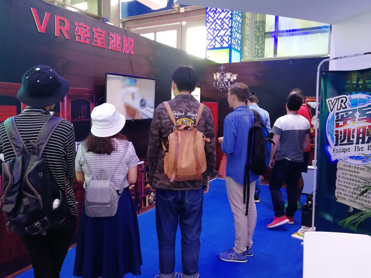 參展的“VR密室逃脫”產(chǎn)品采用我公司自主研發(fā)的VR分布式技術(shù)結(jié)合場景構(gòu)建,可以滿足多人同時進(jìn)行體驗。著重訓(xùn)練和考驗體驗者的觀察能力及推理能力,同時在游戲中向體驗者普及如安全用電、用氣類的居家安全知識,融知識性與娛樂性、教育性與互動性于一體。