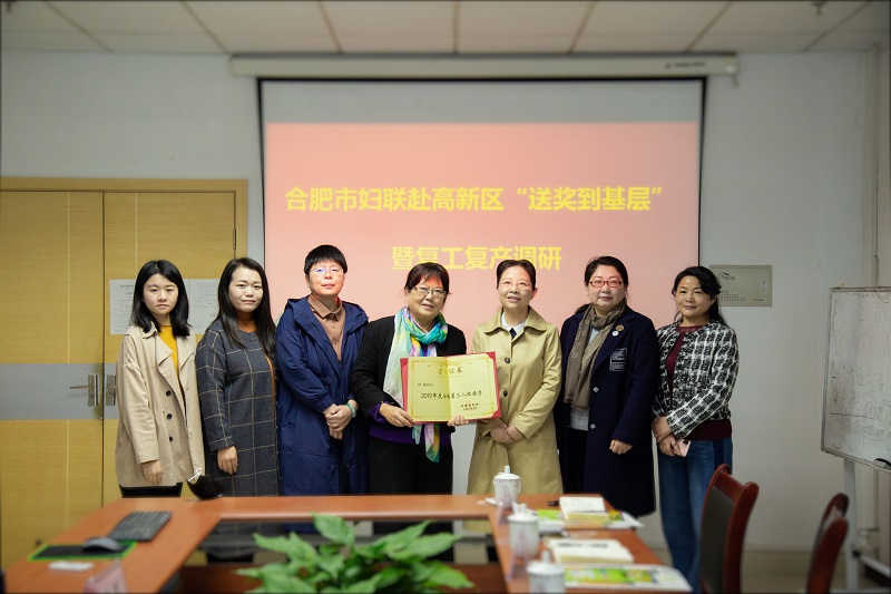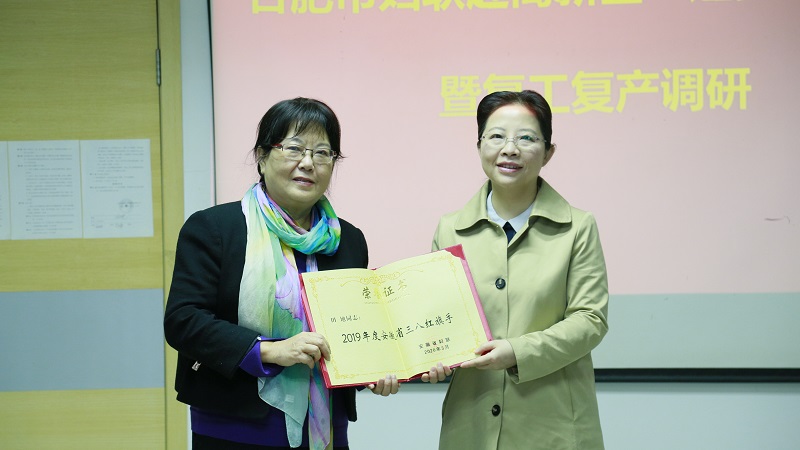 因考慮我市正處于防疫抗疫關鍵時期,合肥市婦聯(lián)決定對2019年安徽省“三八紅旗手”獲獎者采取“送獎到基層”的頒獎方式 ,金諾科技董事長田地在2019年安徽省三八紅旗手評選中榮獲 “安徽省三八紅旗手”榮譽稱號,由合肥市婦聯(lián)主席宣麗玲為田地董事長頒獎,宣主席對田地女士在文化創(chuàng)意產(chǎn)業(yè)領域做出的突出貢獻表示肯定。