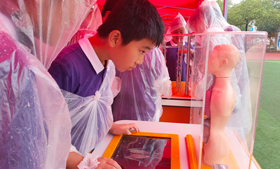 作為安徽省科普教育基地,金諾科技常年來一直在積極地履行著自己科普責任。此次應邀走進頤和中學,組織開展了“健康生活與科學認知”的校園科普活動,為同學們帶來了“最速降線”“反應測試” “餐桌上的安全”“食物金字塔”和“人體系統(tǒng)“5個科普展品。讓同學們在親眼所見、親手操作、親身體驗中享受了一場關于“科技”的盛宴。