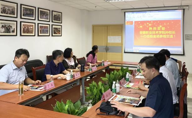 8月4日,安徽職業(yè)技術(shù)學(xué)院孫敬華校長一行赴金諾科技參觀交流,安徽職業(yè)技術(shù)學(xué)院藝術(shù)設(shè)計學(xué)院閆冰書記、呂慧院長、教研室方方主任陪同并主持企業(yè)走訪工作開展。金諾科技董事長田地、副總經(jīng)理戴平、子公司維爾慧渤公司執(zhí)行董事丁辰負責(zé)接待。