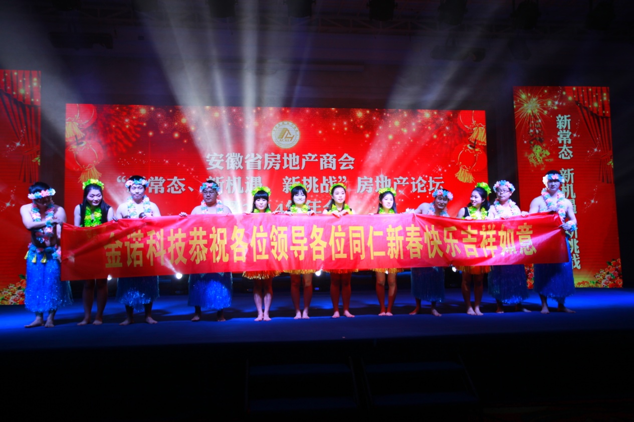 作為本次地產(chǎn)界盛會的主要贊助商之一,合肥金諾科技公司為整場活動提供多媒體技術(shù)支持。由金諾科技多媒體制作團隊精心策劃,歷時數(shù)周拍攝并精剪而成的商會群英大拜年視頻,鏡頭細膩流暢,畫面色彩飽滿,配樂喜慶祥和,從一開始就將整場活動帶入熱烈的氛圍之中,年會活動期間穿插的由商會會員單位領(lǐng)導和員工帶來的精彩文藝表演,也由金諾科技多媒體制作團隊度身打造了切合節(jié)目主題和節(jié)奏韻律的多媒體設(shè)計,不管是婀娜典雅的旗袍秀,或是徽州精粹的黃梅戲曲,或是激情澎湃的現(xiàn)代舞蹈,整個舞臺的背景、燈光、音樂和表演者都自然融為一體,具有極佳的藝術(shù)美感,承托出節(jié)目豐厚的藝術(shù)底蘊。