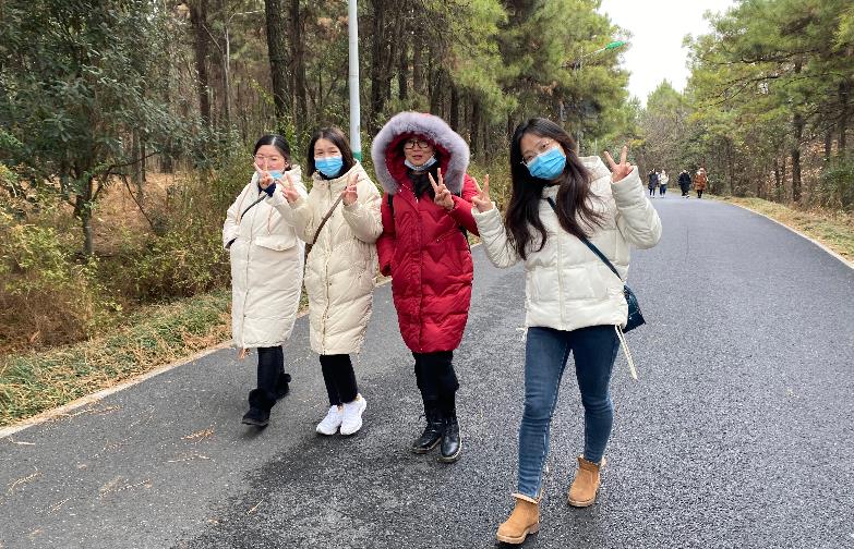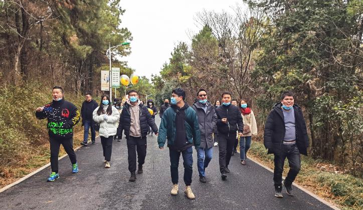 表彰儀式結(jié)束后,優(yōu)秀員工們吃飽喝足一起踏上冬日登山之旅。三五成群,沿著茂林漸深的山道,呼吸室外新鮮空氣,在走了一段路程之后,腳步越來越輕快,身體也開始暖起來,寒冷消失不見。