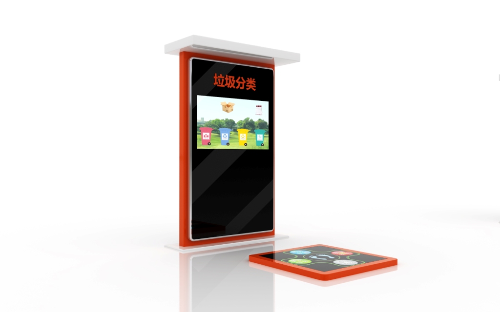 垃圾分為,可回收垃圾、廚余垃圾、有害垃圾和其他垃圾4類,該展項(xiàng)整體造型為分類垃圾桶造型,通過(guò)跳舞毯互動(dòng),讓觀眾進(jìn)行判斷并分類,使觀眾養(yǎng)成將垃圾分類的好習(xí)慣,在生活中減少不必要的資源浪費(fèi)。觀眾站在跳舞毯上,畫面顯示“游戲開始”,隨后,從畫面上方緩緩落下各種不同類型的垃圾,觀眾踩動(dòng)方向鍵,控制垃圾落入相應(yīng)的垃圾桶,系統(tǒng)會(huì)對(duì)觀眾的操作進(jìn)行判斷,看這種垃圾是否落入了正確的垃圾桶,并給予相應(yīng)的分?jǐn)?shù),看看觀眾能不能在規(guī)定的時(shí)間里給這些“垃圾”進(jìn)行正確的分類。
