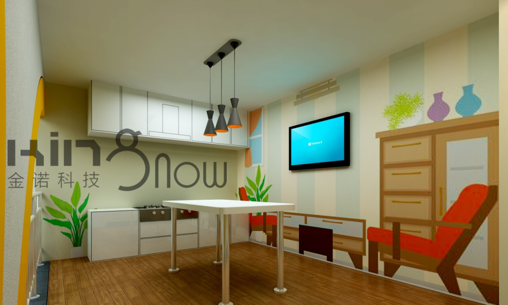 地震體驗屋以家庭中環(huán)境為背景,包括電燈、餐桌以及其他雜物等。整個房間根據(jù)尺寸不同,可容納4-8位人同時參與體驗。該系統(tǒng)即集合了傳統(tǒng)機械液壓系統(tǒng),也融合新穎的互動體驗、多媒體、特效實景系統(tǒng)。主要系統(tǒng)包括:機械系統(tǒng)、液壓系統(tǒng)、家居系統(tǒng)、控制系統(tǒng)、多媒體系統(tǒng)、特效系統(tǒng)、監(jiān)控系統(tǒng)等。
