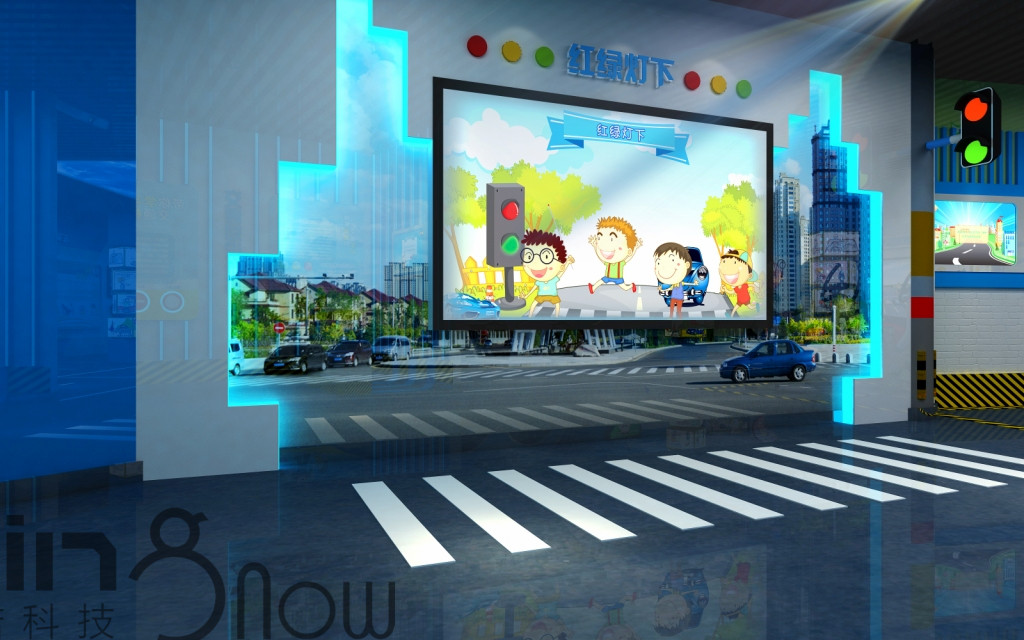 該產(chǎn)品通過高清攝像頭檢測(cè),綠燈亮?xí)r行人可正常通過斑馬線,并出現(xiàn)相應(yīng)的語(yǔ)音提示;紅燈亮?xí)r行人從斑馬線上走過,則會(huì)響起刺耳的剎車聲,投影中會(huì)有車輛緊急剎車,撞擊到屏幕,畫面破裂,引發(fā)追尾等車禍現(xiàn)象,從而營(yíng)造出一種緊張的環(huán)境氛圍。